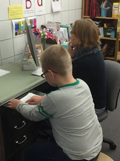 This week, the Title One staff has been working hard to benchmark the entire school. This morning we had benchmarking. Fourth grade students sat in the hallway, outside the media center and waited their turn.
